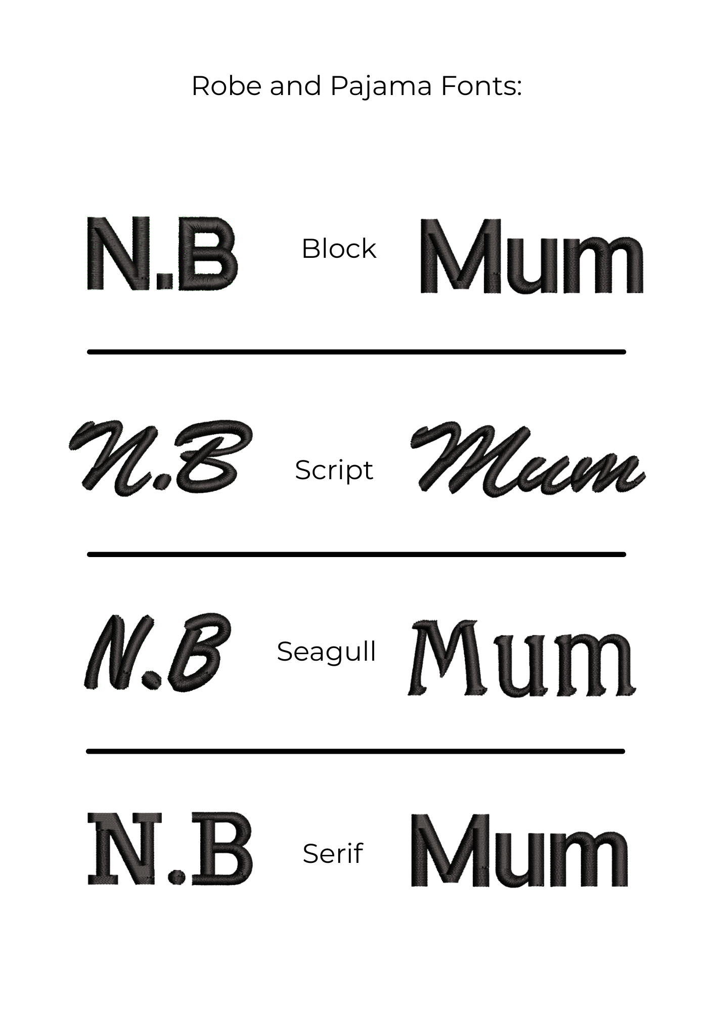 - Example: N.B – Block font - White thread